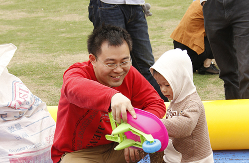 為了讓到場(chǎng)的所有員工及其家人玩得開心,工作人員準(zhǔn)備了多種家庭競(jìng)技和團(tuán)隊(duì)挑戰(zhàn)項(xiàng)目。“羊角球競(jìng)賽”、“合力運(yùn)氣球”、“無(wú)敵風(fēng)火輪”、“快樂DIY”、“城堡滑梯”等親子游戲趣味十足,逗得小朋友們樂開了懷。在團(tuán)隊(duì)挑戰(zhàn)區(qū),“巨人腳步”、“鼓舞人心”、“無(wú)間道”、“龍舟競(jìng)技”等項(xiàng)目參與者眾多,場(chǎng)面熱鬧,“真人CS”更是讓大家不惜冒雨排著長(zhǎng)隊(duì)等候。