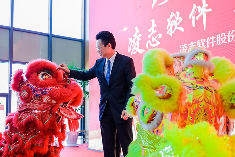 凌志軟件董事長兼總裁張寶泉先生為瑞獅進行點睛后,一段象征吉祥如意、事業興旺的舞獅表演,拉開了凌志軟件喬遷慶典的序幕。