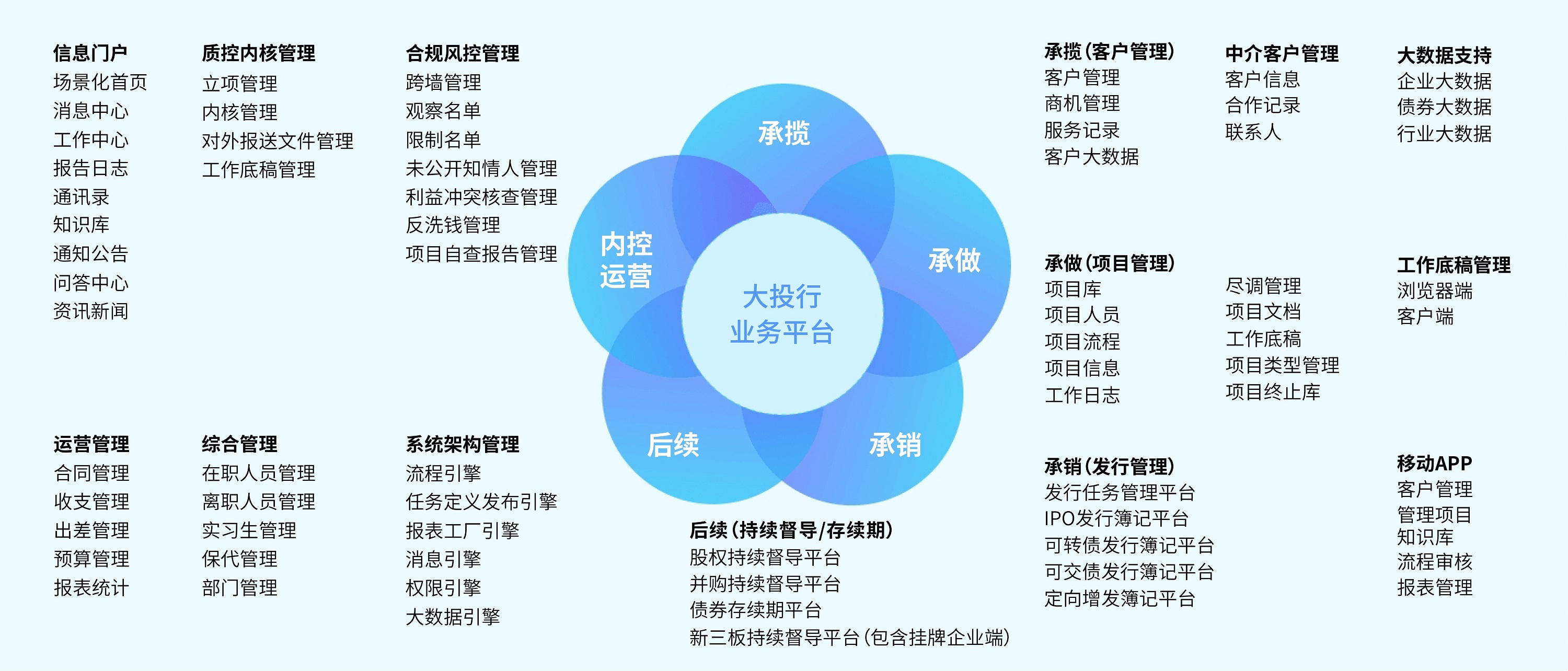 產(chǎn)品涵蓋投行所有業(yè)務(wù)鏈條