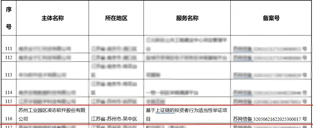 近日,國家互聯網信息辦公室發布了第七批境內區塊鏈信息服務備案編號的公告,凌志軟件“基于上證鏈的投資者行為適當性舉證項目”成功完成備案。