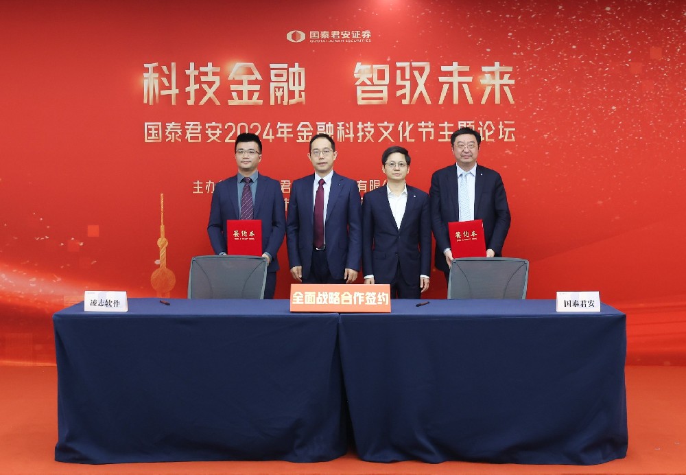 10月24日,“科技金融 智馭未來”——國泰君安2024年金融科技文化節主題論壇在上海成功舉行。會上,凌志軟件與國泰君安證券簽署了全面戰略合作協議。凌志軟件監事會主席、高級副總裁白俊,凌志軟件國內金融事業部總經理張靈靈,國泰君安證券黨委副書記、總裁李俊杰,國泰君安證券首席信息官、數據管理與應用部總經理俞楓及各